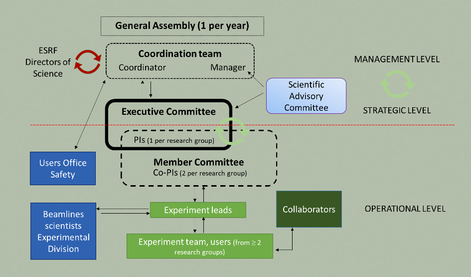 The experimental plan is proposed and discussed collegially every 6 months, using an internal beamtime selection. The Hub governance model describes the interactions between ESRF and the Hub. Roles and responsibilities of the different individuals and committees, the decision making and monitoring process, the procedures for changes in the management structure, the internal mechanism of beamtime allocation, IP management and communication rules of the Hub can be found in detail in our Terms of Reference, available on request at eubatteryhub@esrf.fr.