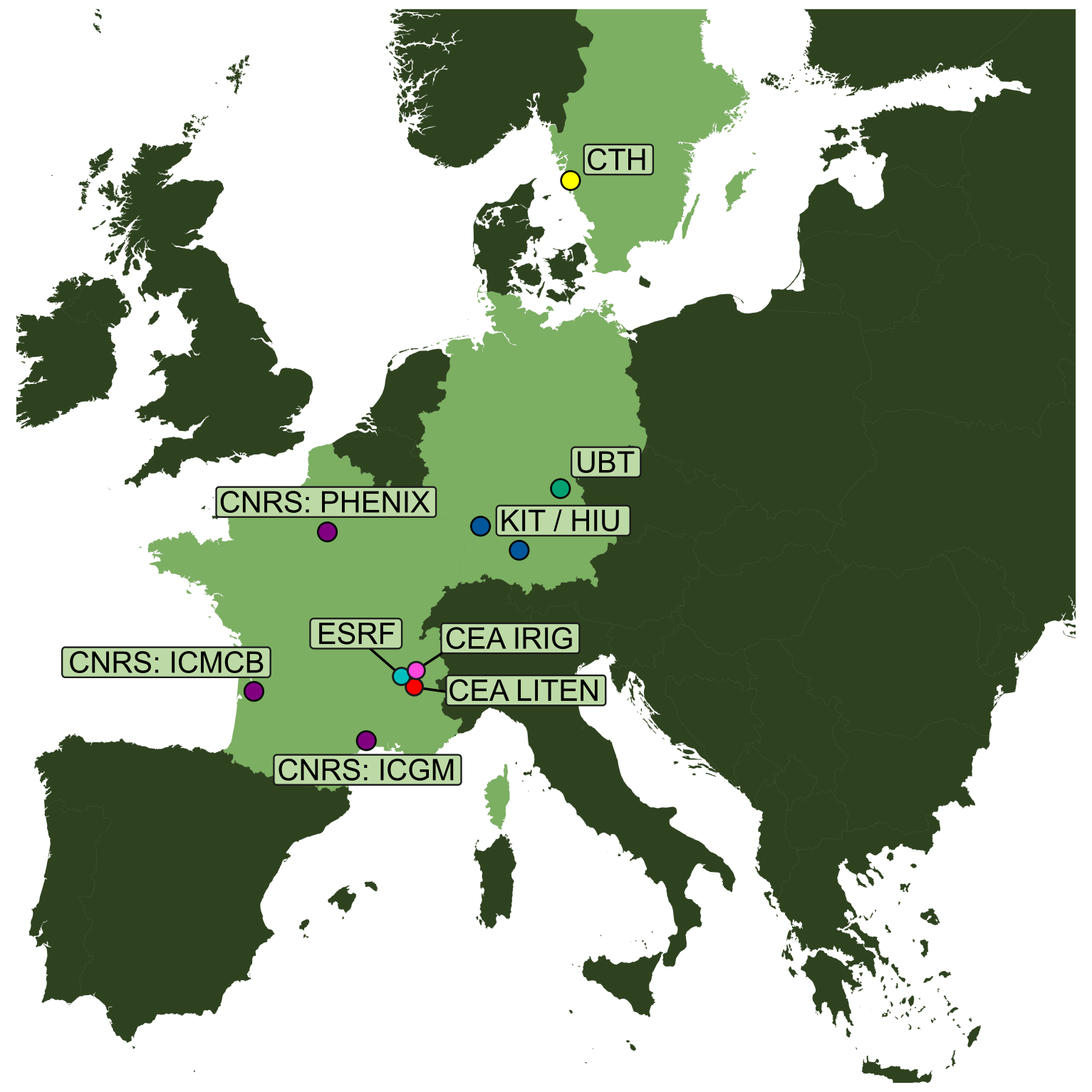 The consortium is composed of battery experts from France, Germany and Sweden with complementary skills in materials synthesis, component engineering, battery prototyping, electrochemistry, analytical and numerical methods, as well as specialists of various synchrotron methods and/or multimodal approaches applied to complex materials.
